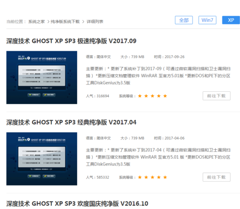 2,點(diǎn)擊打開相應(yīng)的網(wǎng)站,找到你想要的XP安裝系統(tǒng),不過現(xiàn)在大多的都是克隆的純凈版,點(diǎn)擊前往下載或者立即下載,然后選擇相應(yīng)的下載地址就可以直接下載了。