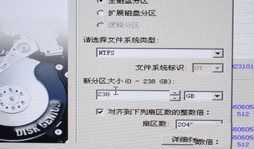 5、新買回來的SSD都是沒有分區(qū)的,我們選擇“電腦店”自帶的分區(qū)工具“DiskGenius”進(jìn)行分區(qū),選擇分區(qū)時(shí)一定記得勾選“對(duì)齊到下列扇區(qū)數(shù)的整數(shù)倍”,也就是我們常說的SSD 4K分區(qū)對(duì)齊,固態(tài)硬盤必須濟(jì)設(shè)置4K對(duì)齊,才會(huì)發(fā)揮出去高速的性能,這點(diǎn)必須注意,如上圖所示。