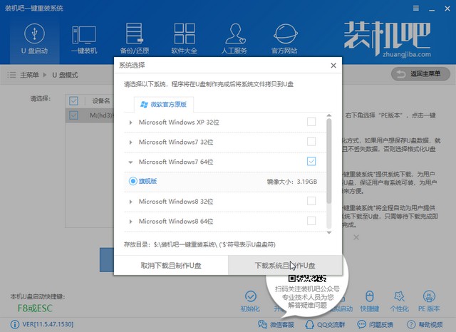 1、打開裝機(jī)吧,選擇U盤啟動(dòng)U盤模式。
