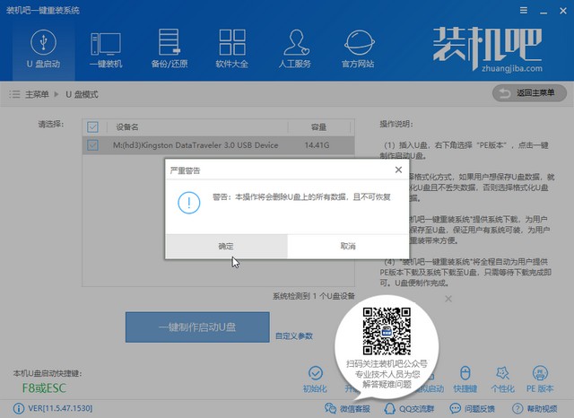 3、出現(xiàn)刪除U盤數(shù)據(jù)提示,如果備份過U盤數(shù)據(jù)就直接點(diǎn)擊確定。