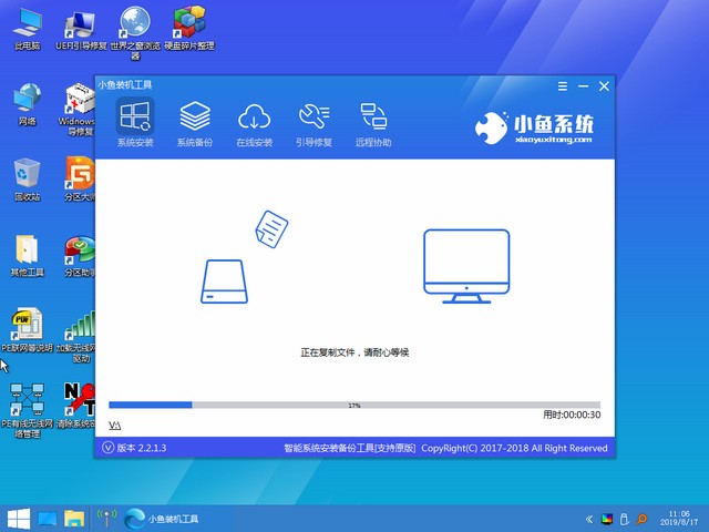 4、接下來小魚系統(tǒng)就會協(xié)助LG電腦安裝win7系統(tǒng)啦,耐心等待。