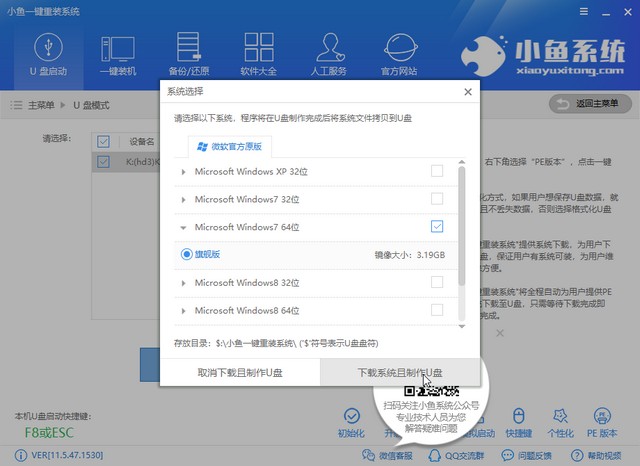 5、彈出系統(tǒng)選擇窗口,選擇自己需要的win7系統(tǒng),點擊下載系統(tǒng)且制作U盤。
