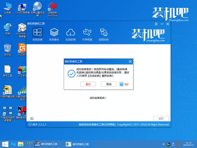 13、出現(xiàn)成功提示后,點(diǎn)擊重裝按鈕。