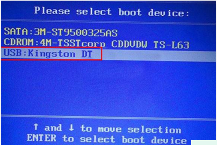 2、選擇U盤選項后回車進入下一步,注意:通常帶有“USB”字樣的選項即為U盤選項。