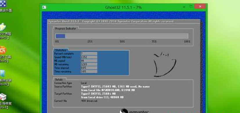 8、解壓完成后,電腦會(huì)自動(dòng)重啟,此時(shí)拔出大白菜U盤(pán),進(jìn)入這個(gè)界面,執(zhí)行安裝win10過(guò)程;