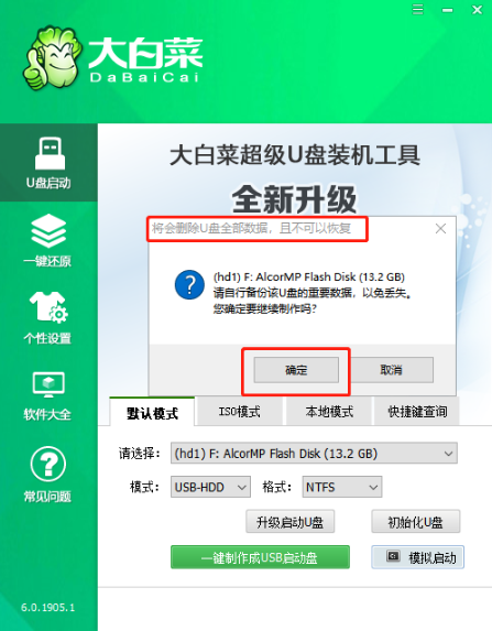 3、制作啟動(dòng)盤會(huì)格式化U盤,請(qǐng)?zhí)崆皞浞莺肬盤數(shù)據(jù)!