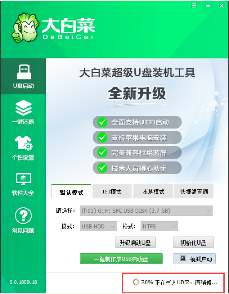 軟件版本:大白菜超級(jí)u盤裝機(jī)工具6.0.1809.18