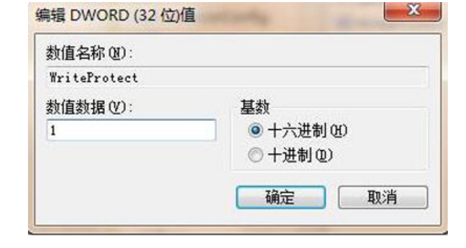 3、然后打開(kāi)WriteProtect文件,將里面的數(shù)值數(shù)據(jù)改為1即可,點(diǎn)擊確定,如圖所示: