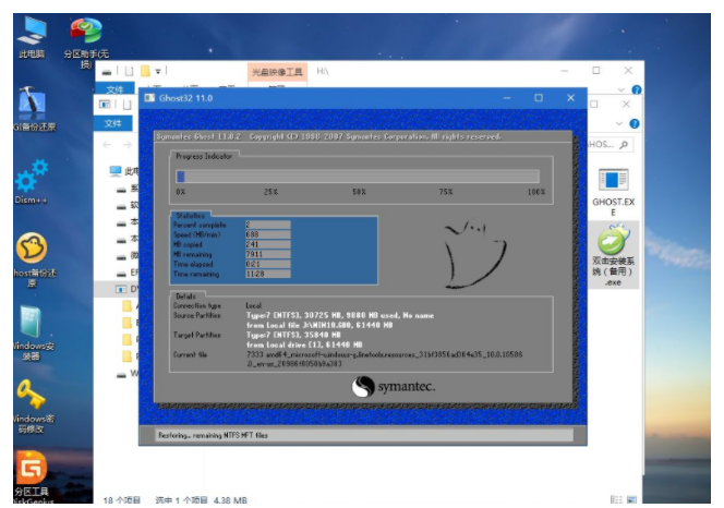 11、轉(zhuǎn)到這個(gè)界面,執(zhí)行win10系統(tǒng)安裝部署到C盤的過程,需要等待一段時(shí)間;