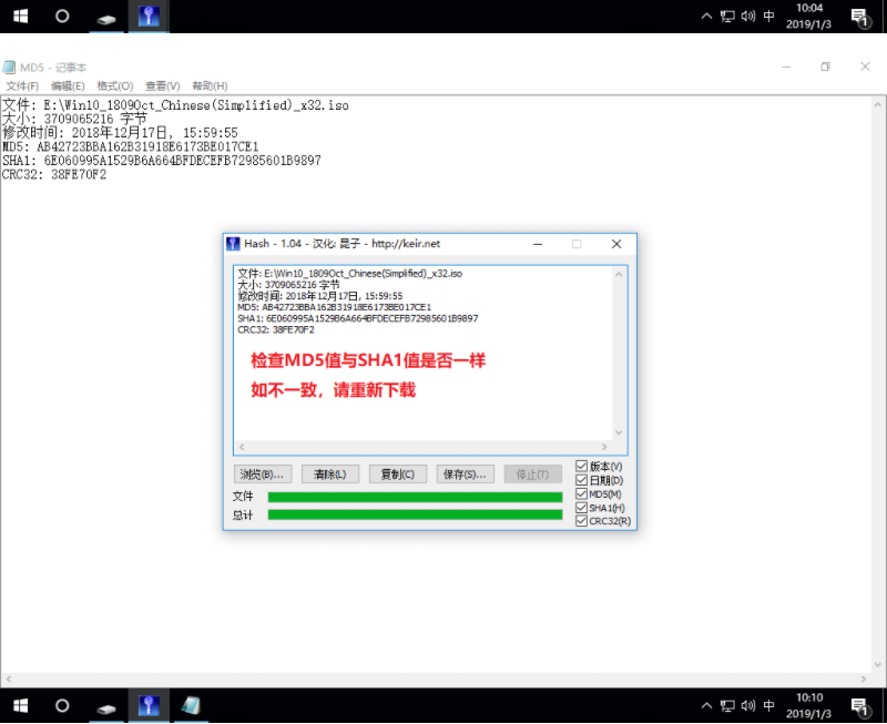 2、下載原版Win10系統(tǒng)鏡像文件以及文件校驗(yàn)工具,下載地址