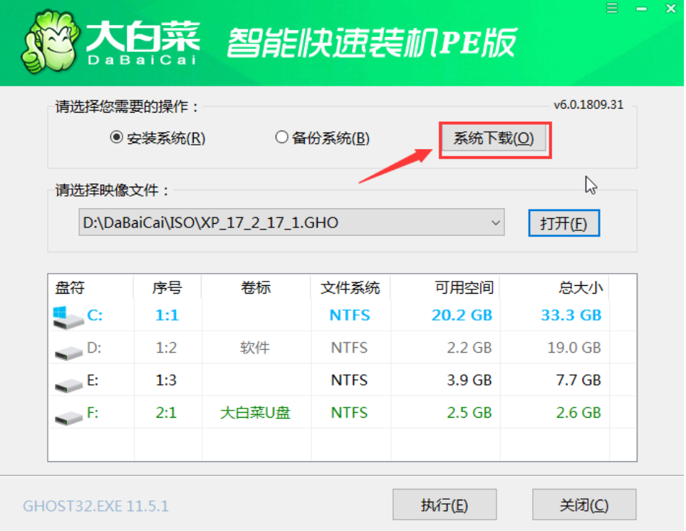 Step1: 下載安裝大白菜裝機(jī)工具,并制作一個(gè)大白菜U盤(pán)啟動(dòng)盤(pán)(注意在完成這一步的過(guò)程中需要將殺毒軟件全部關(guān)閉,否則會(huì)導(dǎo)致制作失敗)