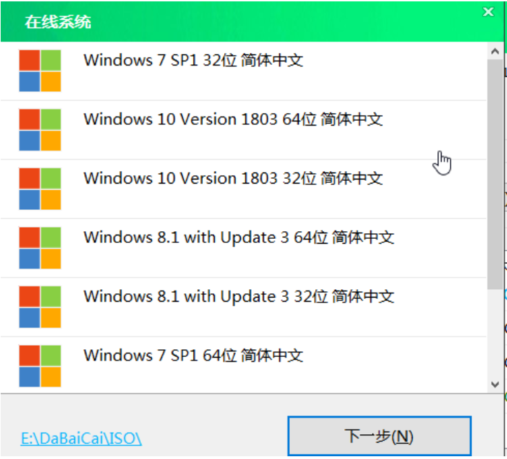 Step5:點(diǎn)擊“系統(tǒng)下載”后,在彈出Windows系統(tǒng)在線下載窗口,我們可以在這里選擇需要的系統(tǒng)下載,并進(jìn)行安裝