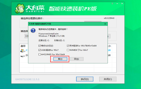 5、彈出窗口后我們默認(rèn)選擇是,打開網(wǎng)卡驅(qū)動和usb驅(qū)動。