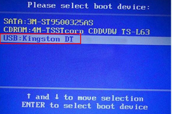 2、選擇U盤選項后回車進(jìn)入下一步,注意:通常帶有“USB”字樣的選項即為U盤選項。