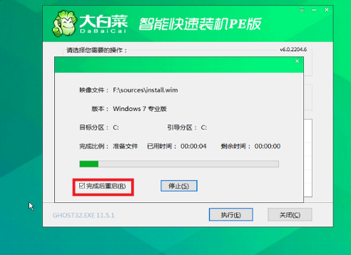 6、win7系統(tǒng)安裝完畢后點擊是然后拔掉u盤重啟電腦。