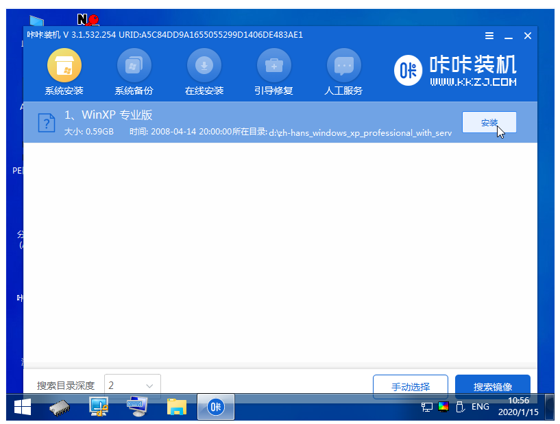 7、進入pe系統(tǒng)界面后,選擇需要安裝的xp系統(tǒng),點擊安裝。