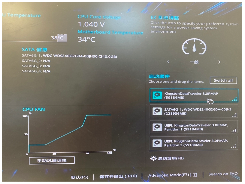 7.在重啟時按下啟動快捷鍵,在bios界面中將u盤設(shè)置為第一啟動項(xiàng);