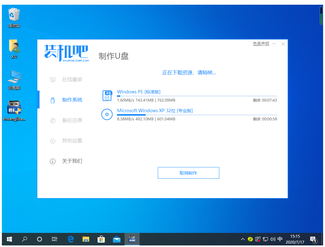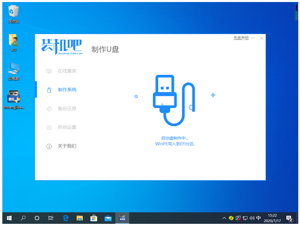 4、正常下載完成后軟件就會(huì)開(kāi)始幫助我們制作啟動(dòng)盤了,這個(gè)過(guò)程可能需要一些時(shí)間,請(qǐng)耐心等候。