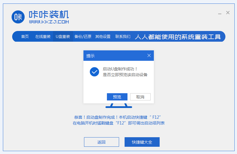 6、下載完成后,點擊預(yù)覽制作好的u盤啟動盤。