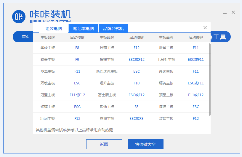 7、在快捷鍵大全中查找自己電腦對應(yīng)的啟動熱鍵,隨后拔出U盤。