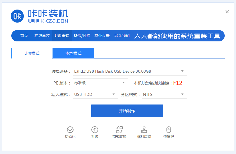 2、打開軟件,選擇U盤模式,點擊開始制作。