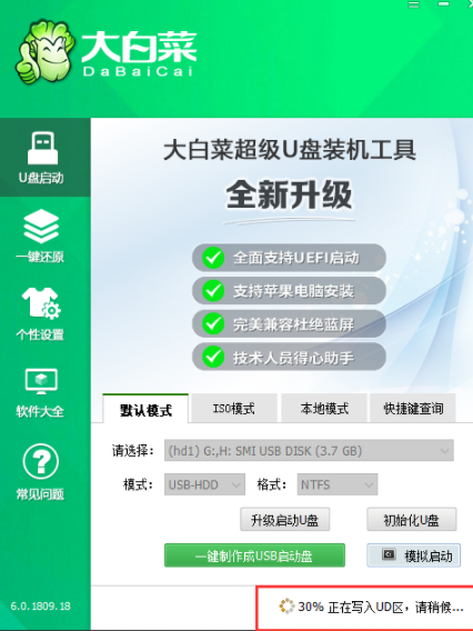 軟件版本:大白菜超級u盤裝機(jī)工具、一個8g以上的空白u(yù)盤