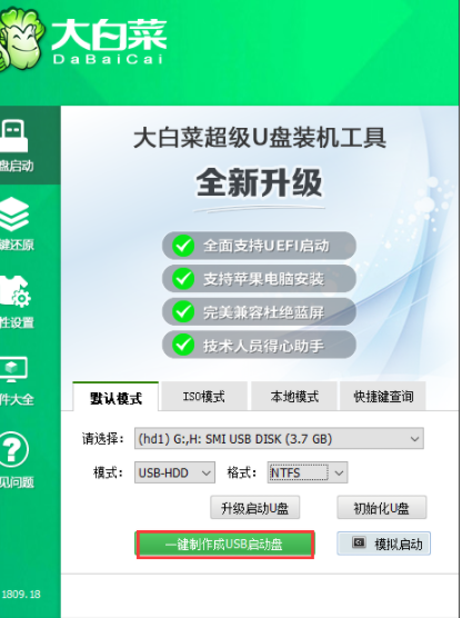 2、然后點(diǎn)擊USB-HDD,選擇NTFS,然后點(diǎn)擊一鍵制作USB啟動盤。