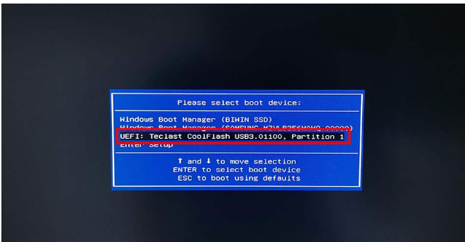 2、完成之后,拔出U盤插入到需要重裝的電腦上,開機或重啟電腦,此時可以一直不斷的反復(fù)按U盤啟動快捷鍵如F12鍵,進入啟動項設(shè)置頁面。按上下鍵選擇U盤選項后按回車進入下一步,通常帶有“USB”字樣的選項即為U盤選項。