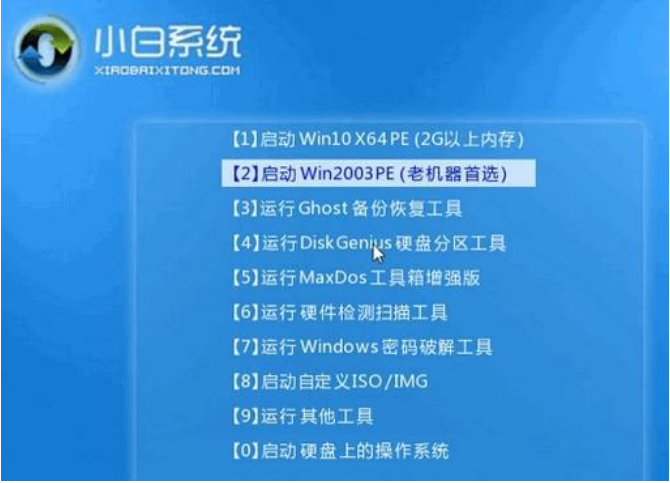 4、電腦重啟過(guò)程中選擇U盤啟動(dòng),在進(jìn)入小白系統(tǒng)pe時(shí),選擇第一項(xiàng)“啟動(dòng)win10 x64PE(2G以上內(nèi)存進(jìn)入)”進(jìn)入電腦系統(tǒng)即可。