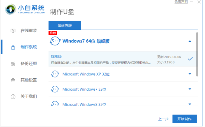 1、首先準(zhǔn)備一個(gè)空白的8G以上的U盤,下載安裝好小白一鍵重裝軟件,點(diǎn)擊制作系統(tǒng),點(diǎn)擊開始制作。
