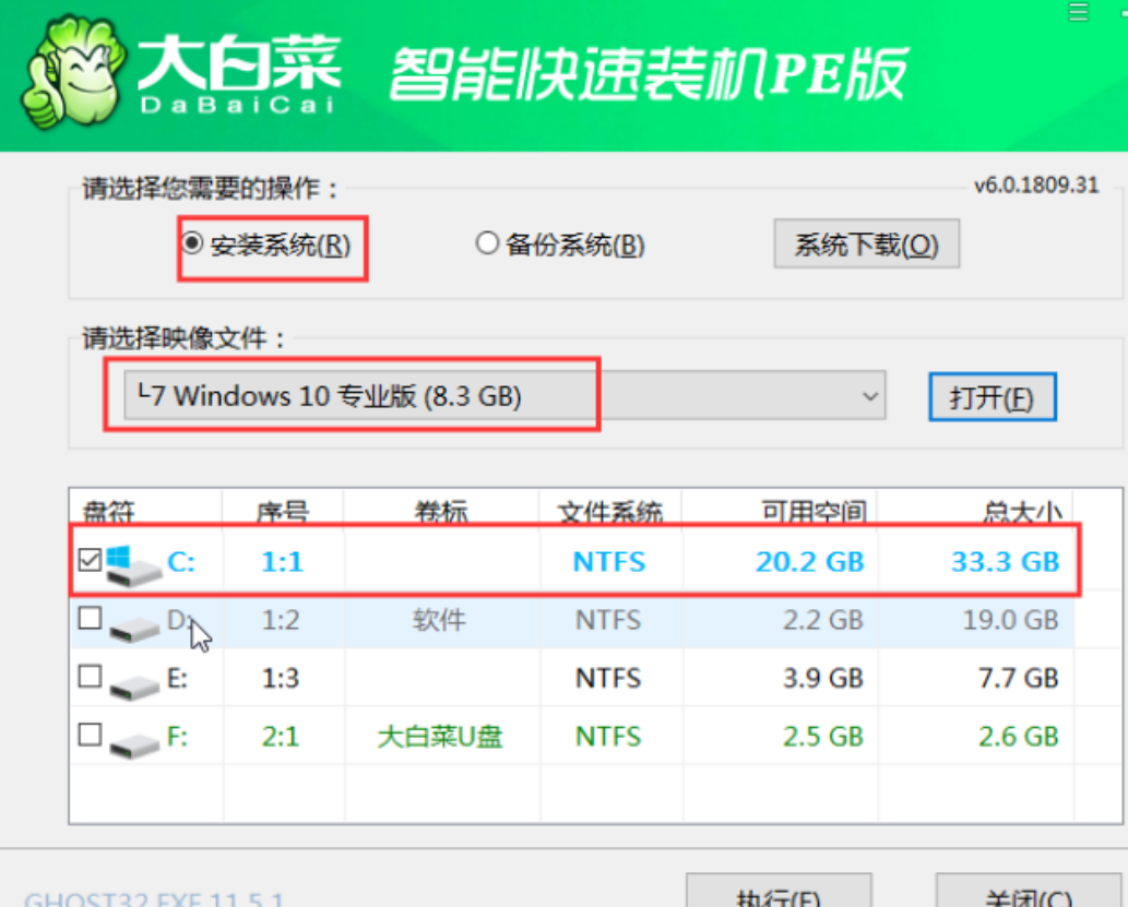 大白菜u盤裝系統(tǒng)方法步驟圖解: