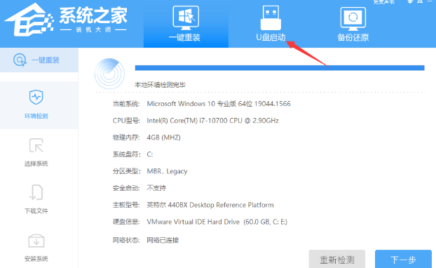 1.首先我們先下載一個(gè)系統(tǒng)之家裝機(jī)大師,然后關(guān)掉殺毒軟件進(jìn)入工具,在最上方選擇U盤啟動(dòng),進(jìn)入U(xiǎn)盤啟動(dòng)盤制作界面