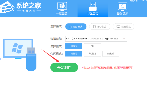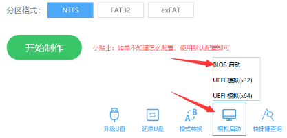 2.選擇默認(rèn)格式和分區(qū)格式,無(wú)需手動(dòng)更改。點(diǎn)擊開始制作。