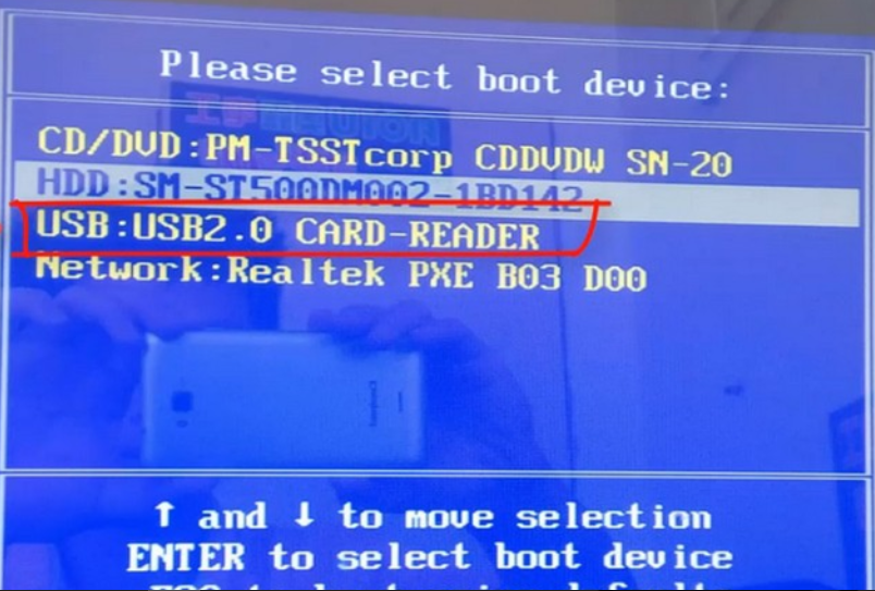 4.將u盤插入需要重新安裝的電腦,電腦重啟或開機啟動并迅速斷續(xù)地按下熱鍵,進入快速啟動菜單界面。