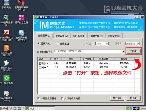 2、PE系重啟完以后,選擇映像文件存儲的路徑。并選擇打開按鈕。