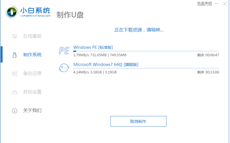 1、 首先插入U(xiǎn)盤,點(diǎn)擊打開小白軟件,在制作系統(tǒng)下鼠標(biāo)點(diǎn)擊開始制作。