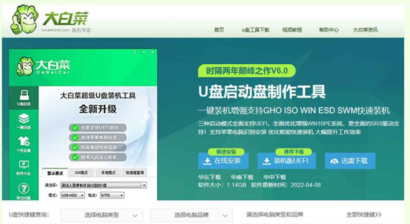 軟件版本:大白菜超級u盤裝機(jī)工具 6.0