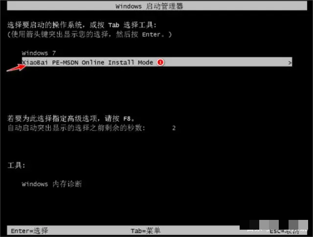 5、重啟之后會進(jìn)入到pe系統(tǒng)的桌面當(dāng)中,在 PE 系統(tǒng)中選擇 XiaoBai PE-MSDN Online Install Mode 選項(xiàng)進(jìn)入PE 系統(tǒng)。