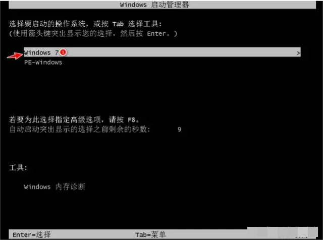 7、安裝完成后,我們重啟電腦,進(jìn)入到選擇系統(tǒng)的頁面選擇 Windows 7 進(jìn)入。