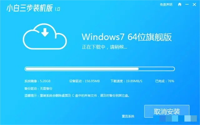 1、我們到小白系統(tǒng)官網(wǎng)下載安裝小白三步裝機(jī)版軟件并打開,在主頁面中選擇win7旗艦版系統(tǒng)安裝。