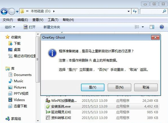 4、彈出提示框,程序準(zhǔn)備就緒,直接點(diǎn)擊是,立即重啟進(jìn)行計算機(jī)還原。