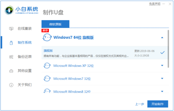 2、選擇系統(tǒng)win10開始制作;