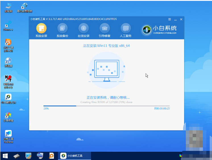 5.進入到pe系統(tǒng),裝機工具會自動幫助我們安裝系統(tǒng),耐心等候系統(tǒng)安裝完成即可。