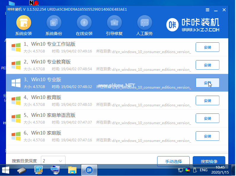 2、選擇需要安裝的win10系統(tǒng),開(kāi)始制作u盤(pán)啟動(dòng)盤(pán)。