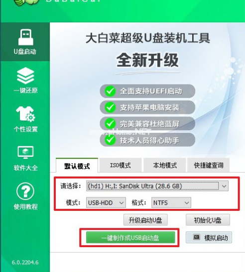 軟件版本:大白菜v6.0