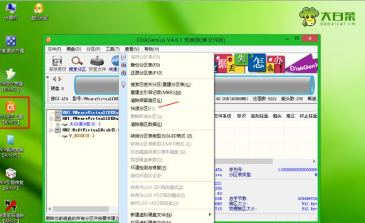 4、進入到pe系統(tǒng)之后,如果是需要重新分區(qū),需要備份所有數(shù)據(jù),鼠標雙擊打開【DG分區(qū)工具】,鼠標右鍵點擊硬盤,選擇【快速分區(qū)】;