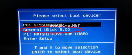 2、在需要重裝系統(tǒng)的電腦接口上插入U盤,重啟電腦后不停按F12、F11、Esc等等快捷鍵打開啟動菜單界面,選擇U盤選項回車,比如General UDisk 5.00,不支持這些啟動鍵的臺式電腦的話請查看第二點設置U盤啟動方法;