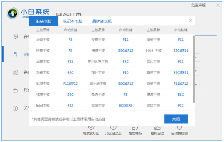3、耐心等待軟件自動(dòng)制作u盤(pán)啟動(dòng)盤(pán),提示制作成功后先預(yù)覽需要安裝的電腦主板的啟動(dòng)快捷鍵,然后拔掉u盤(pán)退出。
