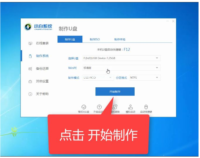 1、插入U(xiǎn)盤(pán)到電腦上,打開(kāi)軟件之后,點(diǎn)擊【制作系統(tǒng)】,確認(rèn)U盤(pán)無(wú)誤,鼠標(biāo)點(diǎn)擊【開(kāi)始制作】。