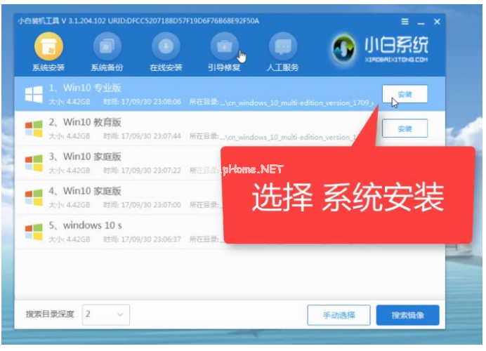 6、開(kāi)機(jī)進(jìn)PE系統(tǒng)界面之后,程序會(huì)自動(dòng)打開(kāi)選擇需要安裝系統(tǒng)版本,點(diǎn)擊【安裝】。